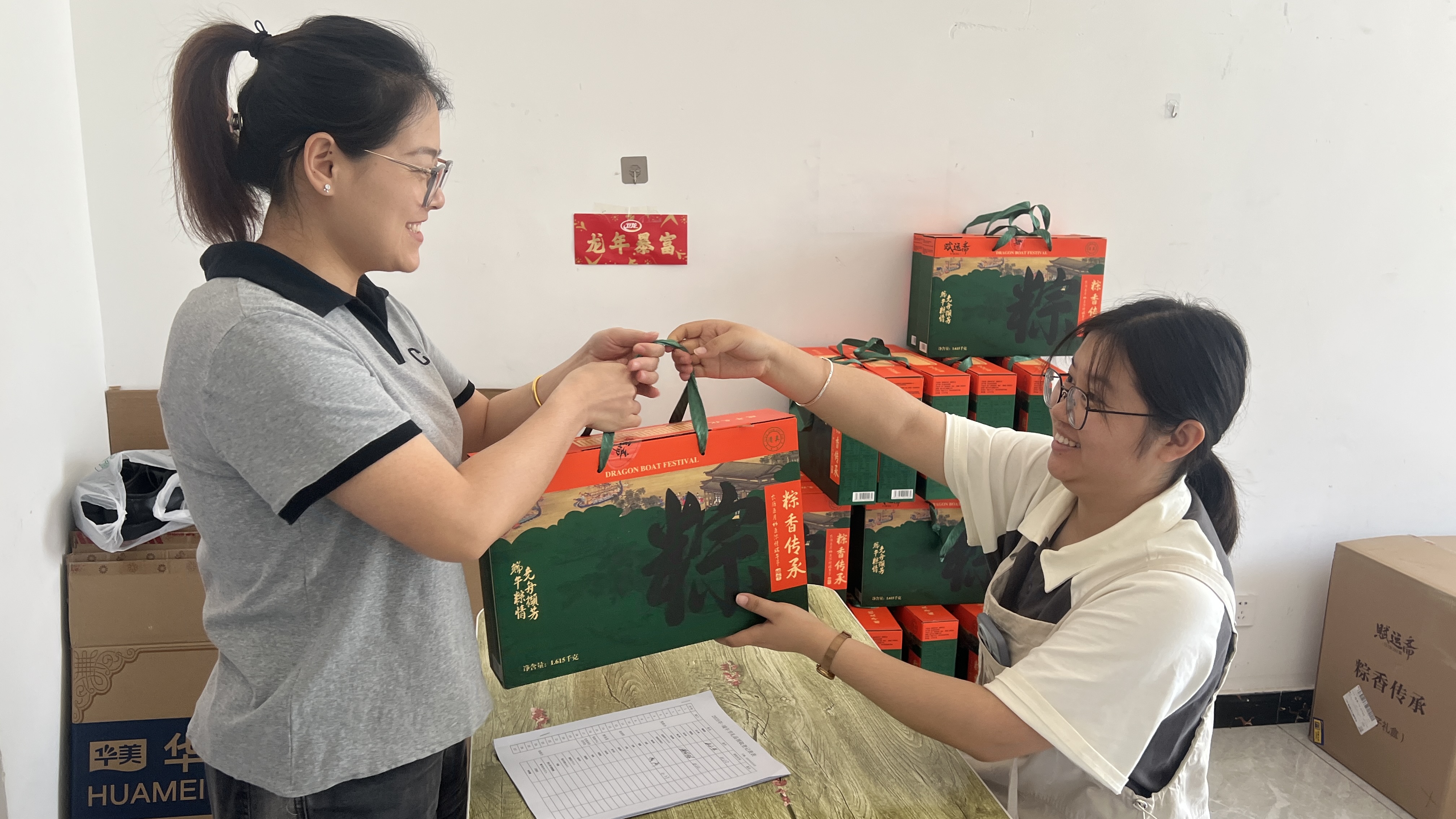 5 月 30 日上午12 时,福利发放工作在校区指定点有序展开。党政办公室工作人员细心清点,教职工们依次有序领取。手中沉甸甸的粽子礼盒,承载着学校对大家一年来勤勉工作的诚挚感谢。不少教职工领到粽子后,脸上洋溢着喜悦的笑容,纷纷称赞学校安排贴心周到,这份“粽”情暖意让节 日的氛围提前弥漫在校园的每个角落。